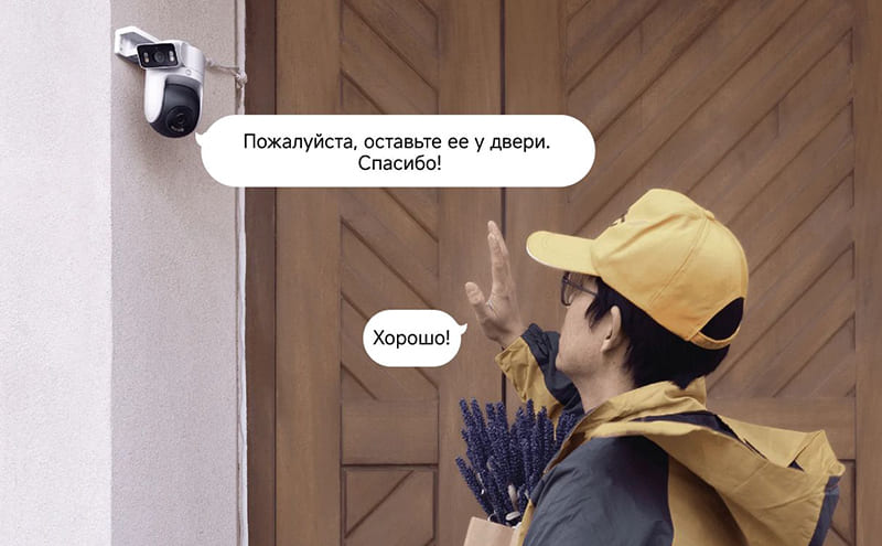 При фиксации проникновения в охраняемую зону камера активирует звуковую сирену и световые вспышки, а также отправляет уведомление на смартфон. Встроенные высокочувствительный микрофон и громкий динамик обеспечивают функцию двусторонней аудиосвязи. Микрофон оснащен системой шумоподавления, отсекающей гул ветра, что позволяет четко слышать речь людей, находящихся рядом с устройством.