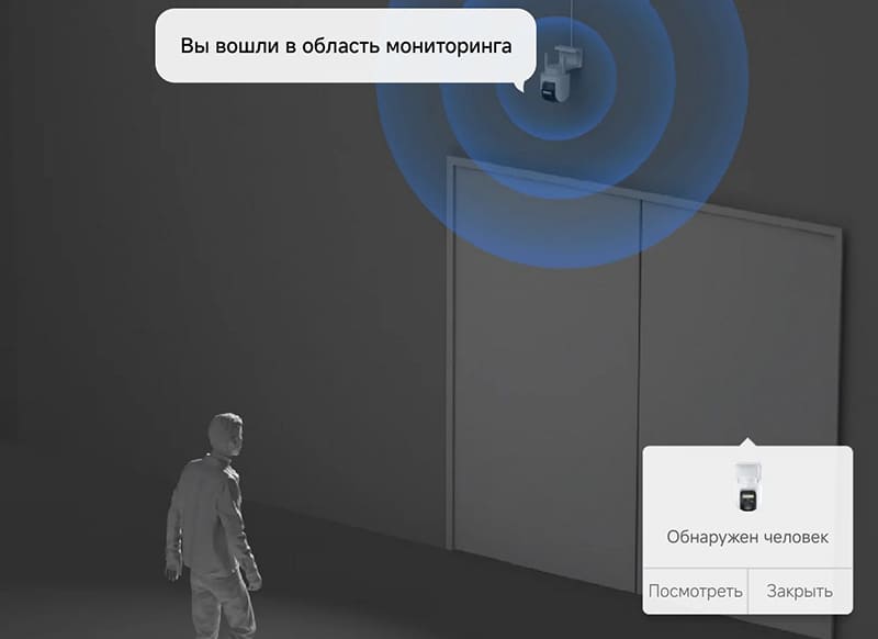 Звуковые и визуальные предупреждения и push-уведомления о сигналах тревоги в приложении Когда камера обнаруживает человека в зоне наблюдения, она автоматически включает звуковой сигнал с миганием ламп, чтобы отпугнуть потенциальных злоумышленников. Также камера немедленно отправляет сообщение в приложение Xiaomi Home.