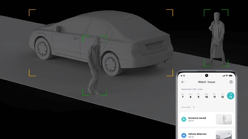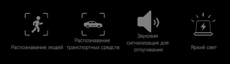 Автоматическое обнаружение и точная идентификация людей и транспортных средств Распознавания людей и транспортных средств с использованием локальных алгоритмов для фильтрации ложных сигналов. При обнаружении человека или автомобиля автоматически записывается видео и на смартфон отправляется уведомление.
