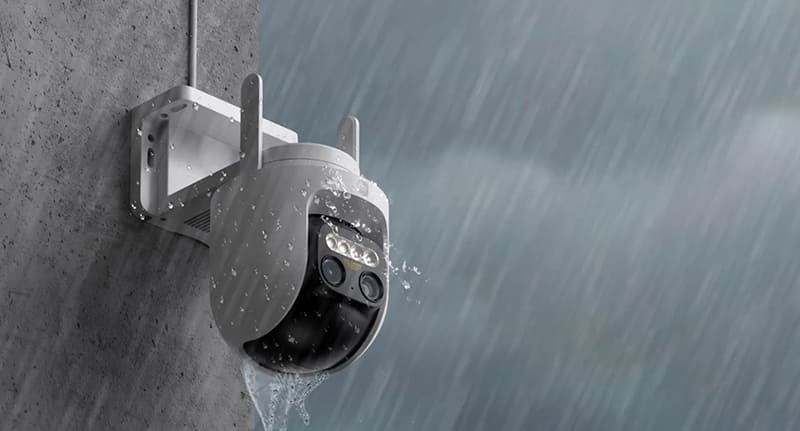 Двойная камера PTZ с защитой от пыли и воды IP66 Камера PTZ поворачивается по горизонтали на 355° и по вертикали на 100°. Пыле- и водонепроницаемый корпус с классом защиты IP66 гарантирует надежную работу вне помещений независимо от погодных условий.