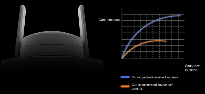 Внешняя двойная антенна для расширенного и стабильного сигнала Wi-Fi Внешняя двойная антенна с мощным усилением поддерживает сети Wi-Fi 2,4 ГГц и обеспечивает более надежную и стабильную передачу сигнала.