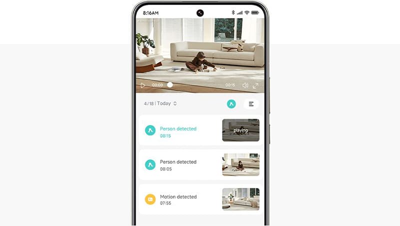Встроенный ИИ анализирует происходящее в реальном времени: распознает движения, звуки, активность домашних животных, мгновенно отправляя уведомления на ваш смартфон. Обработка данных на устройстве гарантирует быструю реакцию и защиту личных данных. Также реализовано автослежение за объектами для полного контроля ситуации.