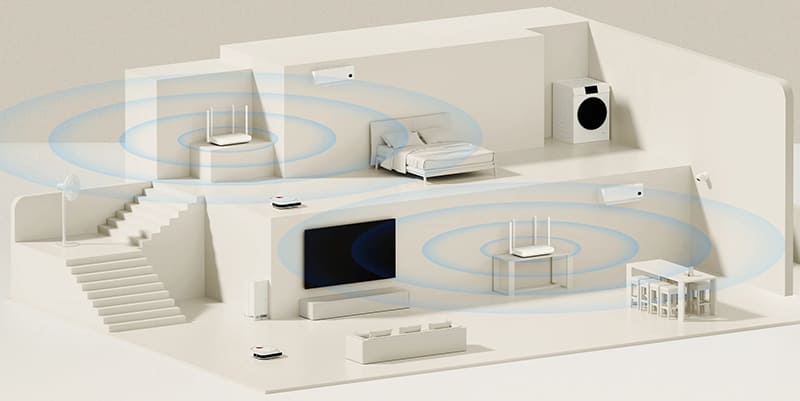 Для расширения зоны покрытия и устранения «мертвых» зон используется поддержка mesh-сети, позволяющая объединять несколько совместимых роутеров Xiaomi в единую бесшовную систему с автоматическим переключением между точками доступа.
