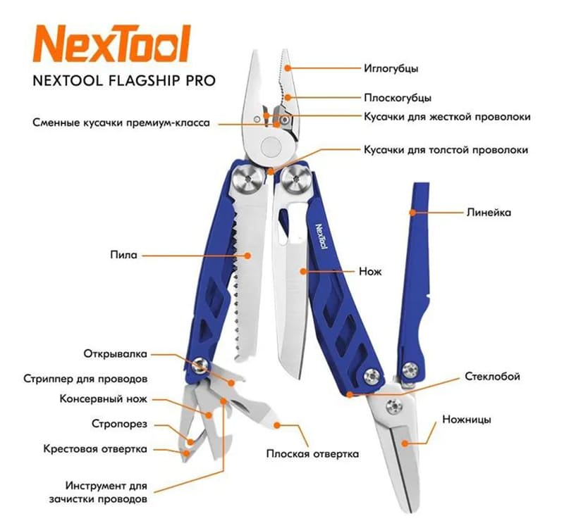 Дизайн и материалы обеспечивают облегченное использование одной рукой, а точность обработки деталей до 0,04 мм исключает люфты и увеличивает срок эксплуатации. Надежные, эргономичные и многофункциональные, мультитул NexTool Flagship Pro NE20284 идеально подойдет для туристов, любителей активного отдыха и домашних мастеров, чтобы всегда иметь под рукой надежный инструмент для выполнения множества задач в любых условиях.