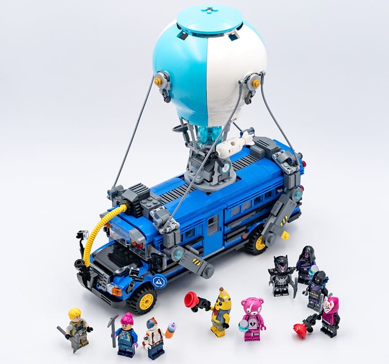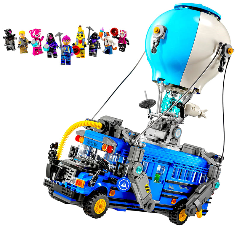 LEGO Fortnite 77073 «Боевой автобус» — крупный набор по мотивам Fortnite, в котором знаковый летающий автобус из игры превращается в детализированную сборную модель. Набор сочетает проработанный внешний вид, узнаваемую форму школьного автобуса с воздушным шаром и полноценный интерьер с сиденьями для минифигурок, за счёт чего подходит и для игры по мотивам Fortnite, и для выставки на полке.