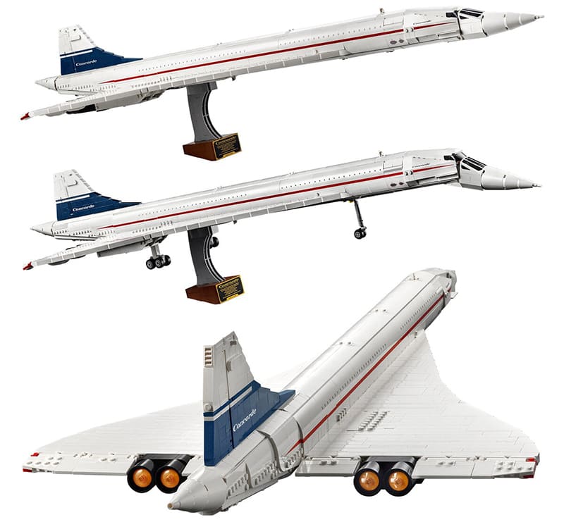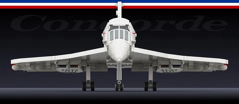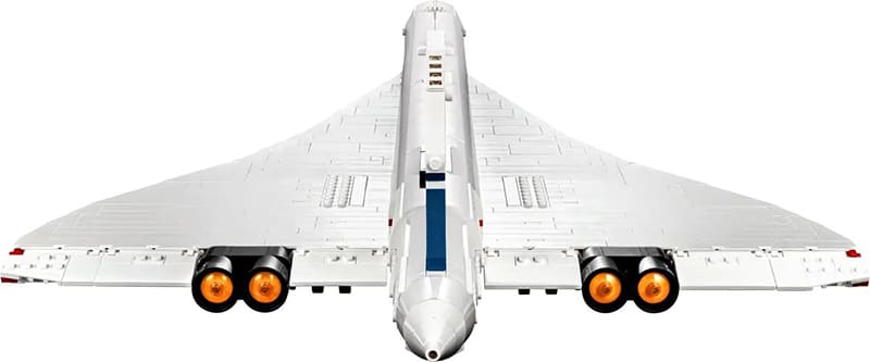 Набор воспроизводит четырёхдвигательную компоновку Concorde с помощью стилизованных гондол, закреплённых под дельта-крылом. Каждая гондола собирается из нескольких сегментов: воздухозаборника, центральной части и выхлопного сопла. Центральная нижняя часть фюзеляжа в районе крыла имеет более «квадратную» форму, что позволяет разместить механизмы шасси и опорную структуру. При этом переход к округлой носовой и хвостовой части выполнен из изогнутых slopes, придающих корпусу плавный профиль.