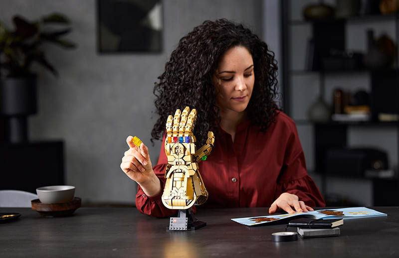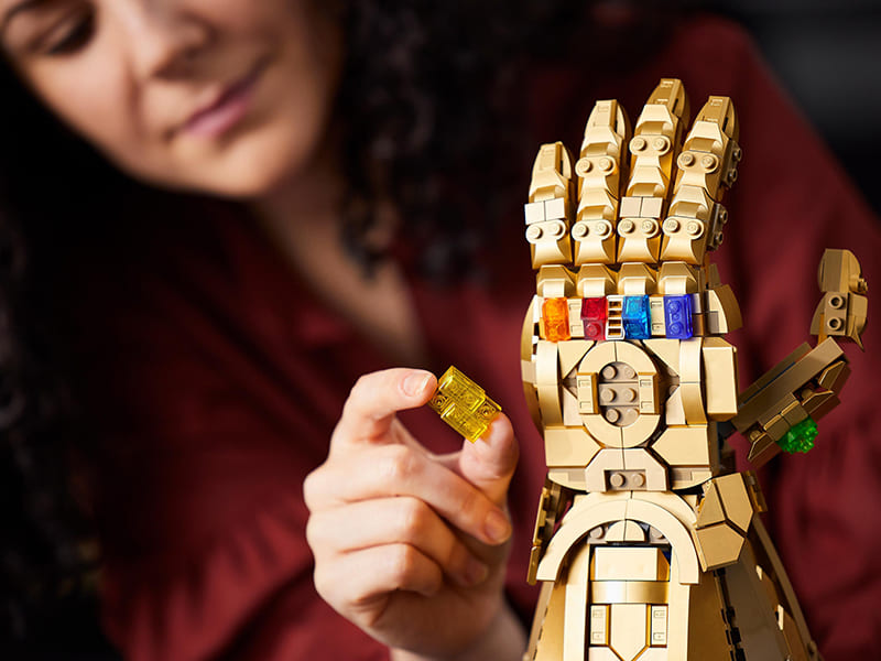 LEGO Marvel Super Heroes 76191 «Перчатка бесконечности» — коллекционный набор для взрослых, в котором легендарная перчатка Таноса превращается в детализированную выставочную модель. Набор создан как объект для сборки и демонстрации: он не предназначен для активной игры, а служит декоративным акцентом на полке или рабочем столе поклонника Marvel.