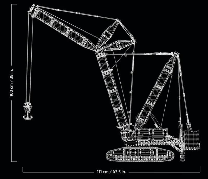Набор LEGO Technic 42146 Гусеничный кран Liebherr LR 13000 предлагает амбициозный проект сборки. Готовая модель достигает высоты более 99 см, что делает её одной из крупнейших конструкций в линейке LEGO Technic. Полные размеры модели составляют приблизительно 100 см в высоту, 111 см в длину и 28 см в ширину.