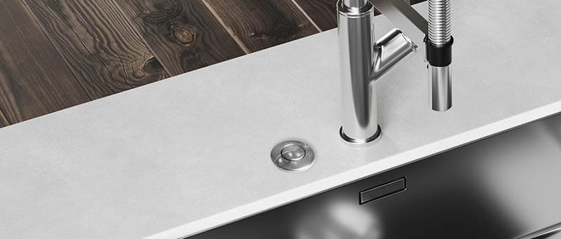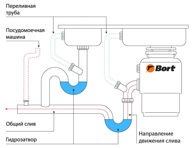 Bort Titan 8000 совместим со всеми металлическими и каменными раковинами с диаметром сливного отверстия 90 мм и толщиной до 18 мм. Конструкция предусматривает специальный вход для подключения сливного шланга посудомоечной машины.