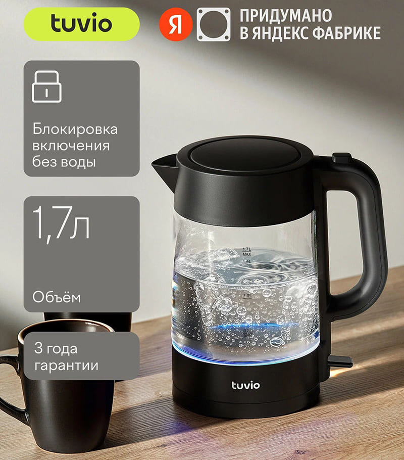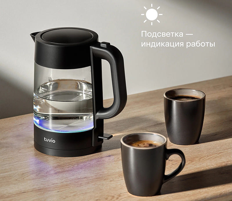 Электрический чайник Tuvio TKG0117 — надёжный и практичный прибор для ежедневного использования. Простое механическое управление, быстрое кипячение и красивая LED-подсветка делают его удачным выбором для дома и офиса. Контроллер Strix гарантирует безопасную эксплуатацию. Минималистичный дизайн с прозрачным корпусом впишется в интерьер любой кухни.