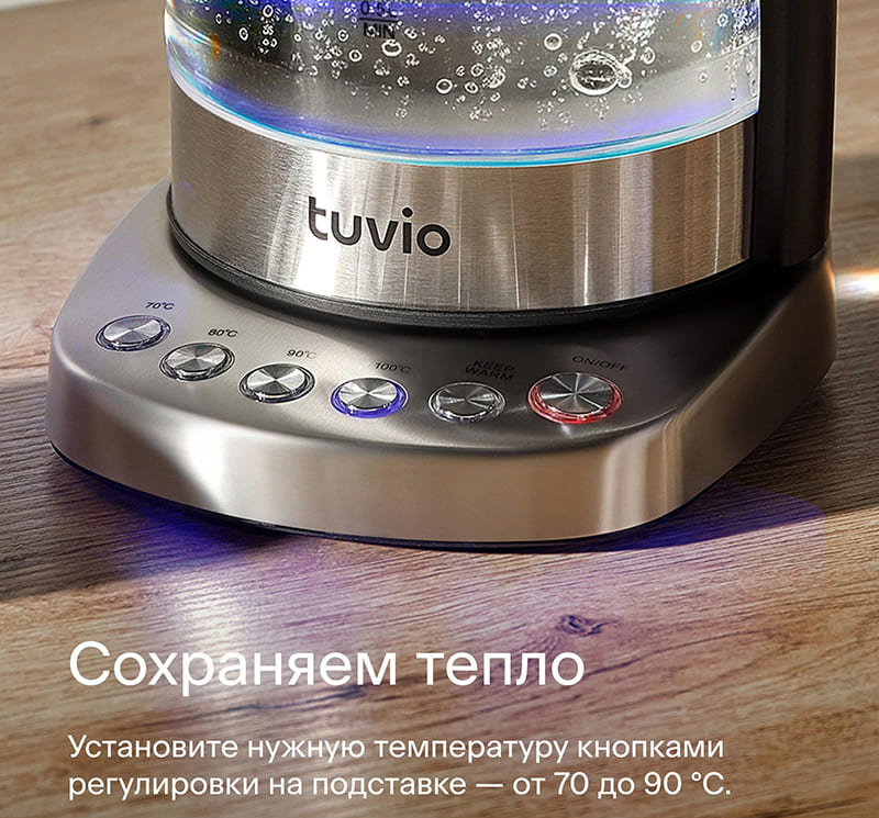 Электрический чайник Tuvio TUK217H1 — надёжный и функциональный прибор для ежедневного использования. Возможность точного выбора температуры нагрева делает его универсальным инструментом для приготовления различных напитков. Режим поддержания тепла экономит время и электроэнергию. Контроллер Strix гарантирует безопасную эксплуатацию. Стильный дизайн впишется в интерьер любой кухни. Тихая работа, быстрое кипячение и простой уход делают чайник удобным выбором для дома и офиса.