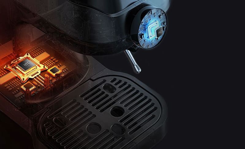 Система PID-регулятора и датчика NTC обеспечивает стабильную регулировку температуры экстракции без скачков. Это гарантирует идеальное сочетание температуры, скорости потока и давления, обеспечивая высокое качество каждой порции кофе.