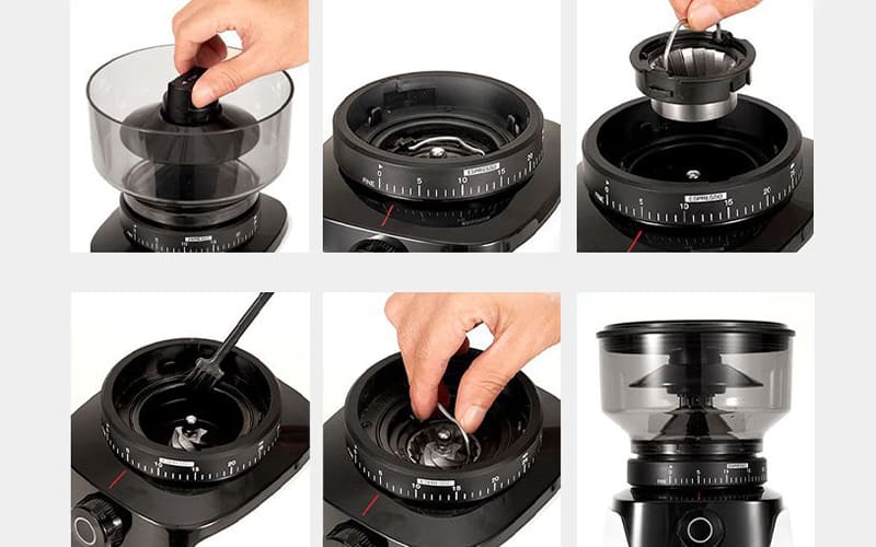 Процесс очистки максимально прост благодаря съёмным шлифовальным компонентам. Откройте крышку, поверните шлифовальный стержень против часовой стрелки, быстро очистите щёткой, верните стержень по часовой стрелке и закройте крышку — всё готово.