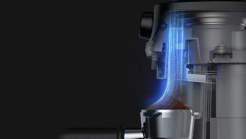 Антистатическая конструкция минимизирует разлет молотого кофе, обеспечивая чистоту рабочей поверхности. 90-градусный прямой сброс молотого кофе через централизованные каналы предотвращает скопление остатков и упрощает сбор готового продукта.