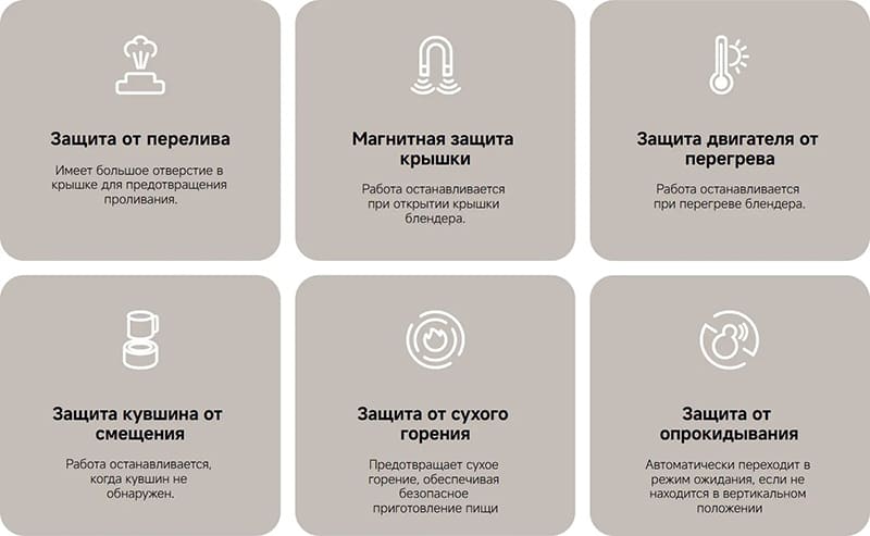 - Защита от включения с открытой крышкой — блендер не запустится, пока крышка не закрыта