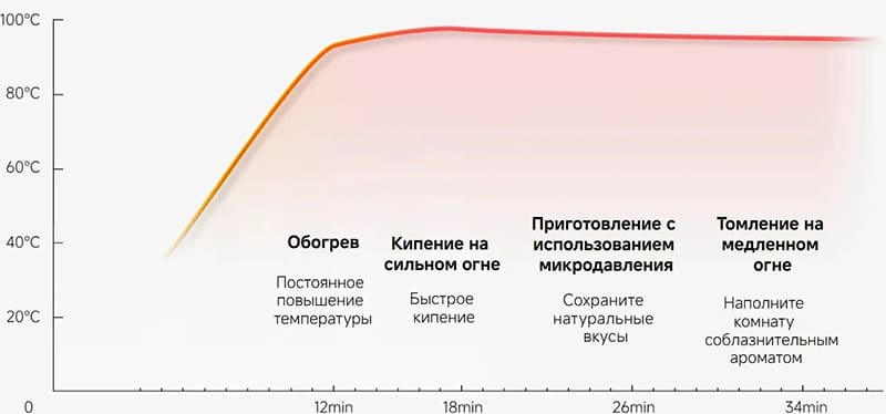 Циркуляция пара внутри чаши создаёт среду под микродавлением, которая сохраняет натуральный вкус, аромат и влагу ингредиентов. Многоэтапный процесс приготовления обеспечивает точный контроль температуры на каждом этапе. Это означает, что витамины и питательные вещества фруктов и овощей не теряются при нагреве.