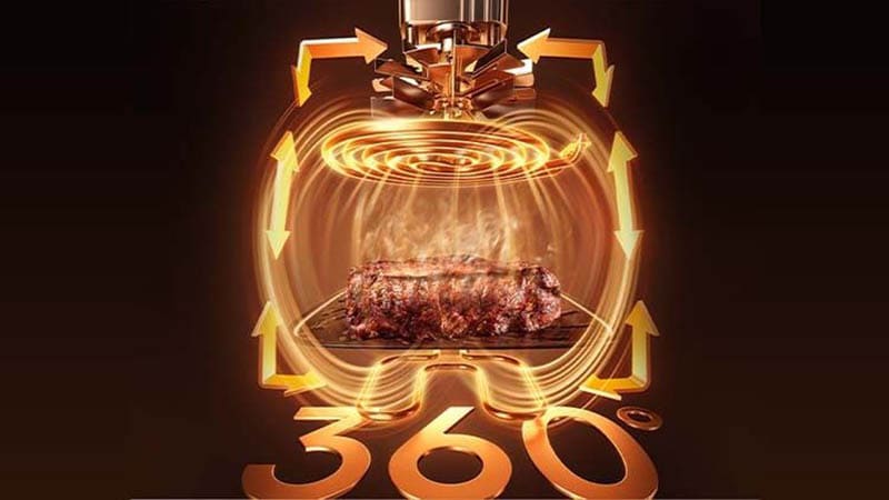 Уникальная система циркуляции тепла Dual Zone Cyclonic с циркуляцией воздуха на 360 градусов обеспечивает равномерное и быстрое приготовление без необходимости переворачивания продуктов.