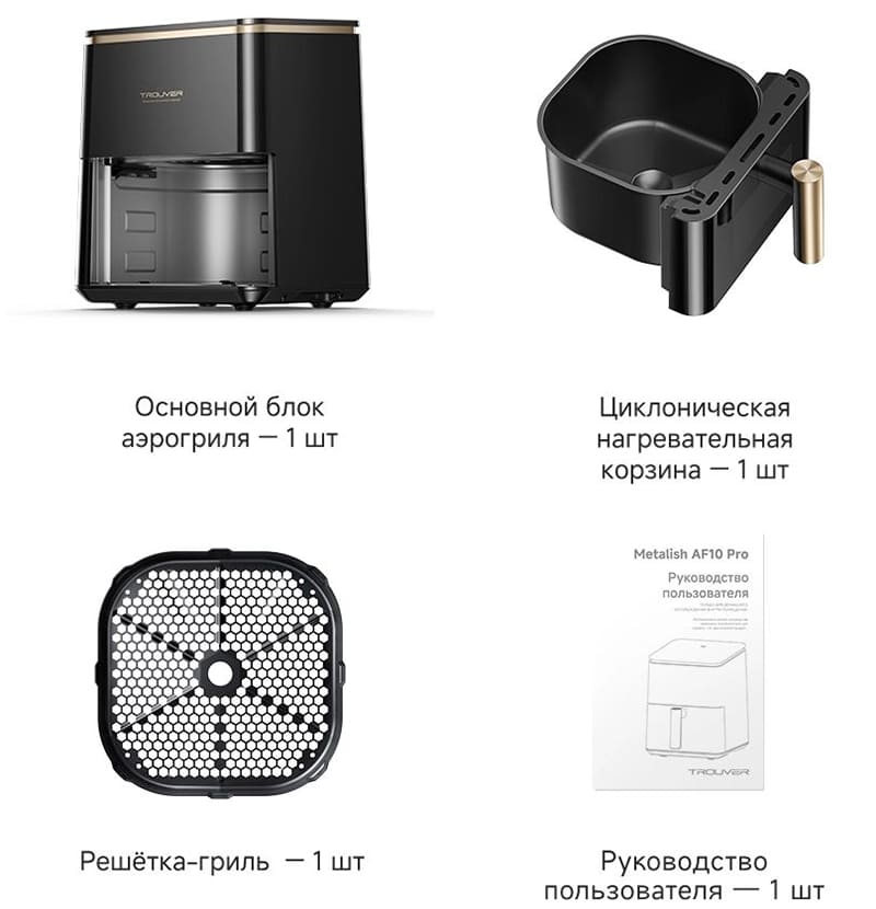 Аэрогриль (аэрофритюрница) Trouver Air Fryer Metalish AF10 Pro 4L (Международная версия) Черный