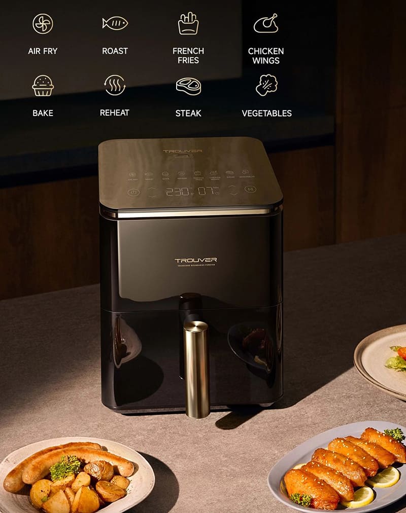 Аэрогриль Trouver Air Fryer Metalish AF10 Pro является отличным выбором для тех, кто ищет компактное, надёжное и простое в использовании устройство для приготовления вкусной и здоровой пищи. Сочетание мощности 1550 Вт, инновационной технологии VolcanicFlow, керамического антипригарного покрытия, умной функции паузы и восьми предустановленных программ делает эту модель идеальным помощником на кухне для семей и людей, ценящих время и здоровье.
