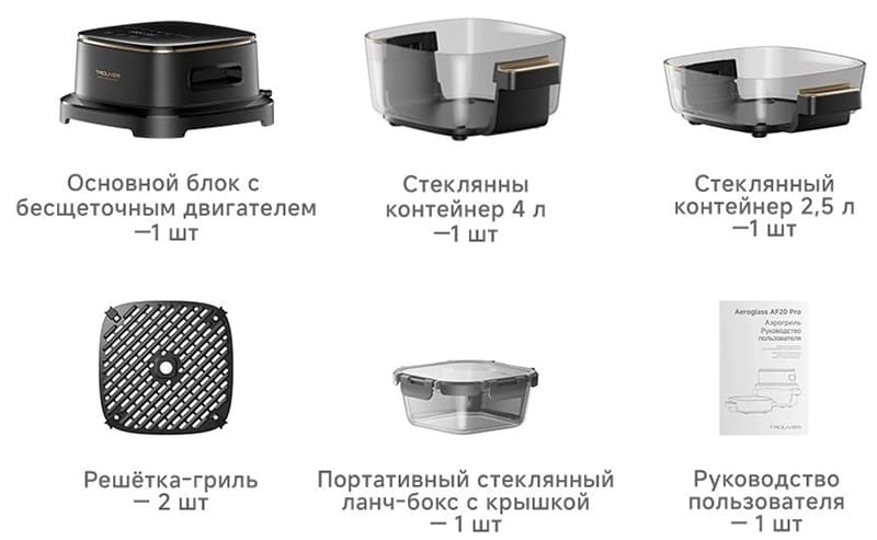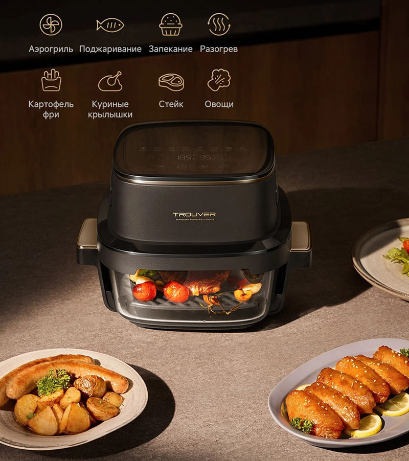 Аэрогриль Trouver Air Fryer Metalish AF20 Pro 4+2.5L — универсальное и удобное устройство для приготовления здоровой и вкусной пищи. Комбинация двух стеклянных чаш разного объёма, инверторного бесщеточного двигателя, восьми программ и сенсорного управления делает эту модель идеальным помощником на кухне. Полностью стеклянная конструкция, возможность подачи блюда прямо в чаше, низкий уровень шума и простота ухода гарантируют, что аэрогриль станет незаменимым устройством, обеспечивая быстрое приготовление качественных блюд с минимальными затратами масла и электроэнергии.