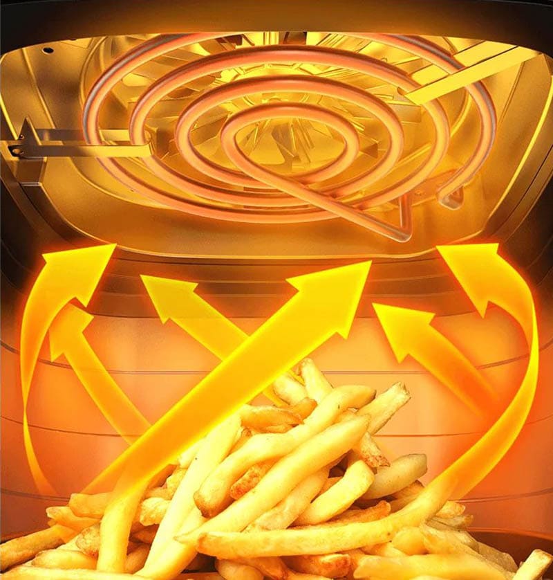Технология конвекционного нагрева 360° обеспечивает равномерное распределение горячего воздуха, что позволяет готовить без необходимости переворачивания продуктов и добиваться хрустящей корочки и сочности одновременно.