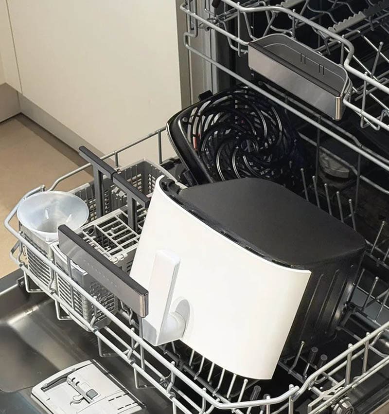 Аэрогриль легко чистить благодаря антипригарному покрытию, минимизирующему прилипание жира. Корзина и аксессуары пригодны для мытья в посудомоечной машине.